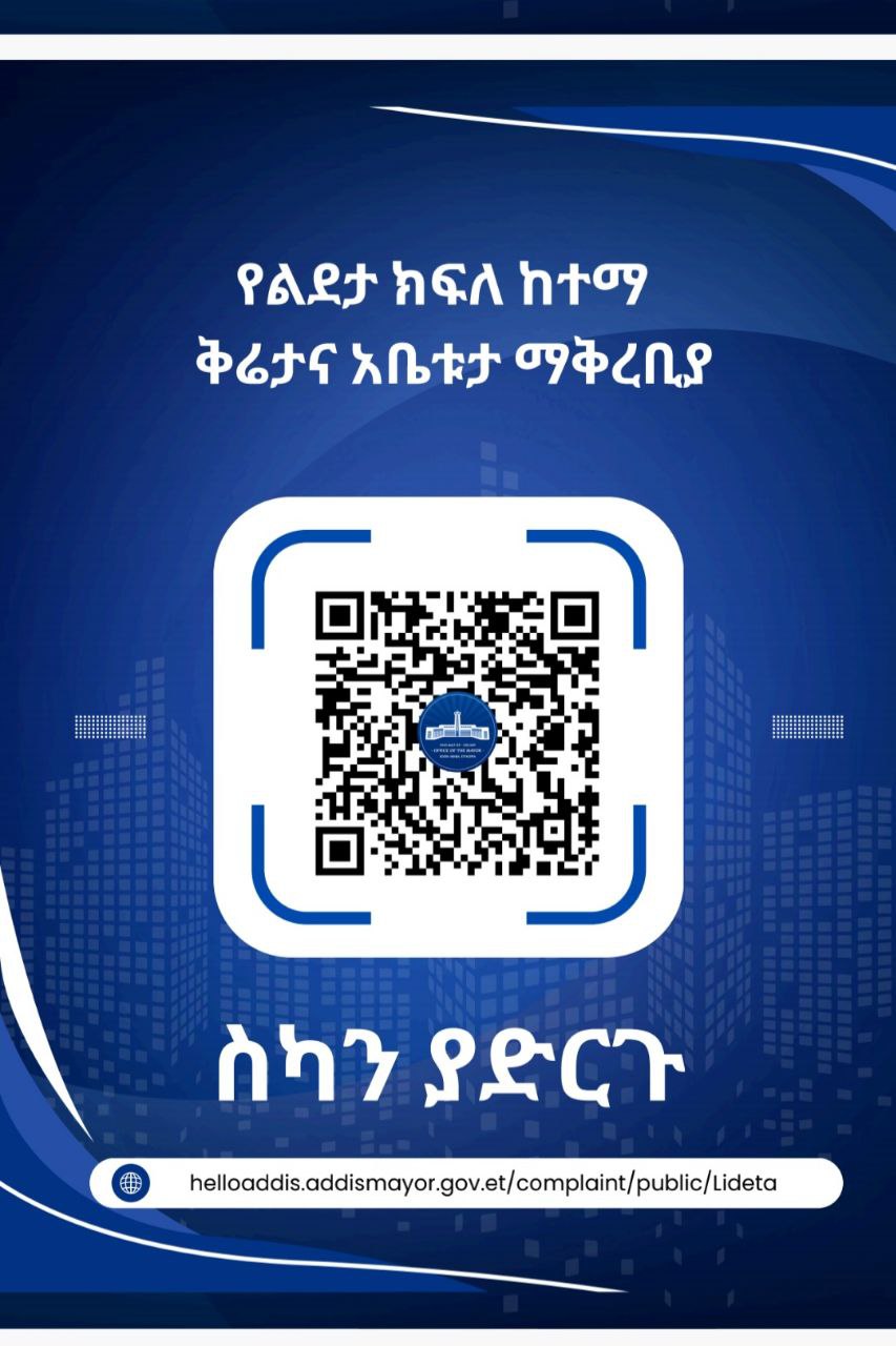 - ዉድ ደንበኞቻችን ቅሬታና አቤቱታ ካልዎት ከታች ዝርዝር መረጃ ዉስጥ የተያያዘዉን QR code ስካን በማድረግ የሄሎ አዲስ የቅሬታ መስጫ ቅጽን በሞሙላት ቅሬታና አቤቱታዎን መላክ ይችላሉ።